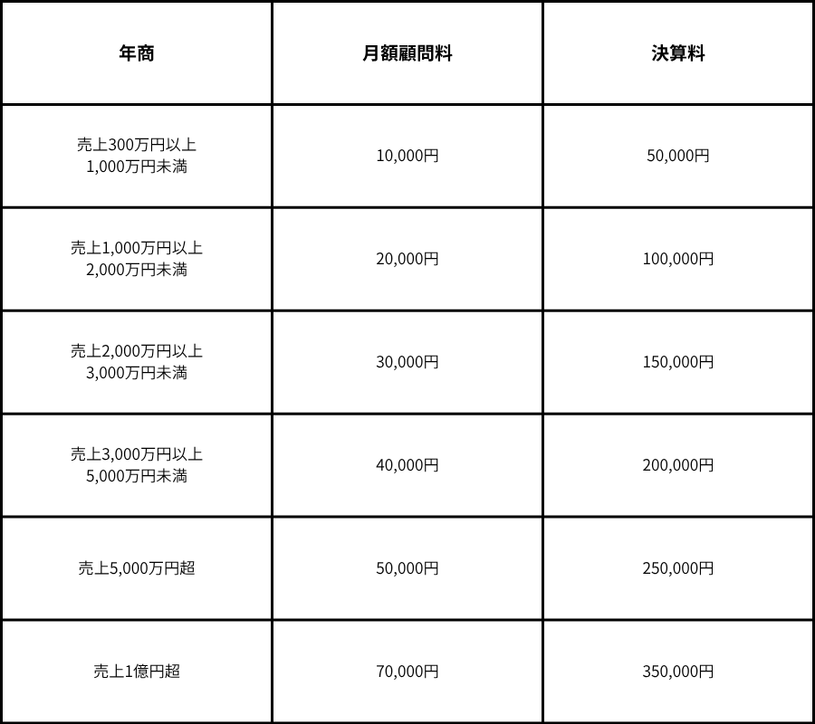 別途、年末調整(5人まで顧問料1カ月分)、償却資産税申告(顧問料1カ月分)があります。税務調査立会料1日当たり60,000円。業務の品質を保つため、毎月2社までとさせていただいております。