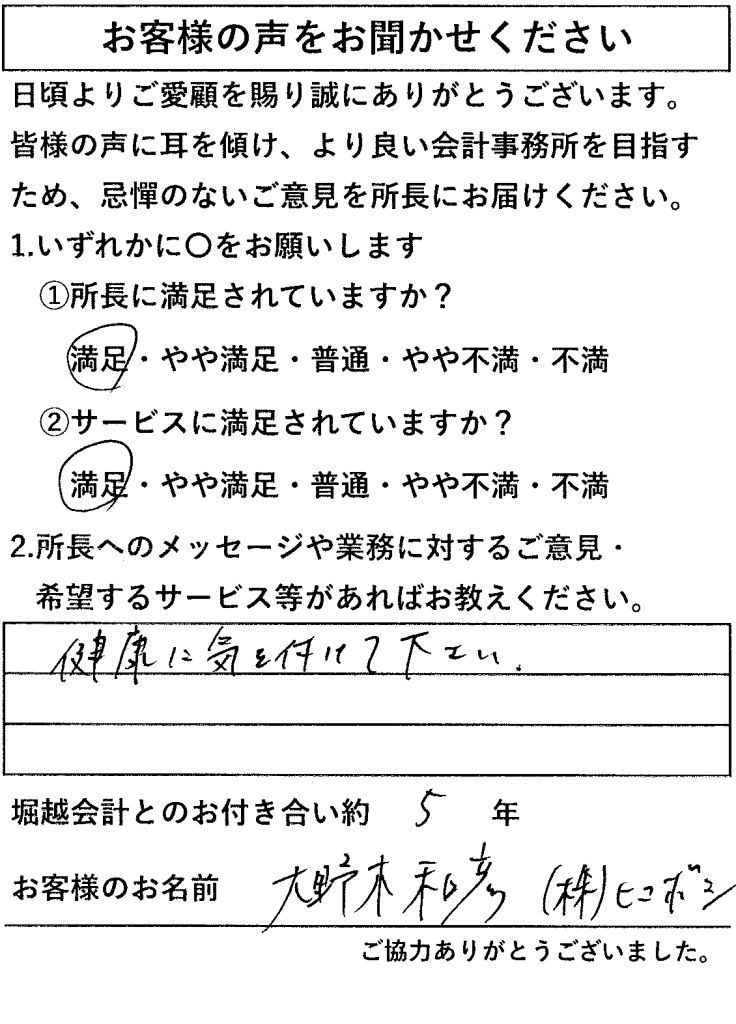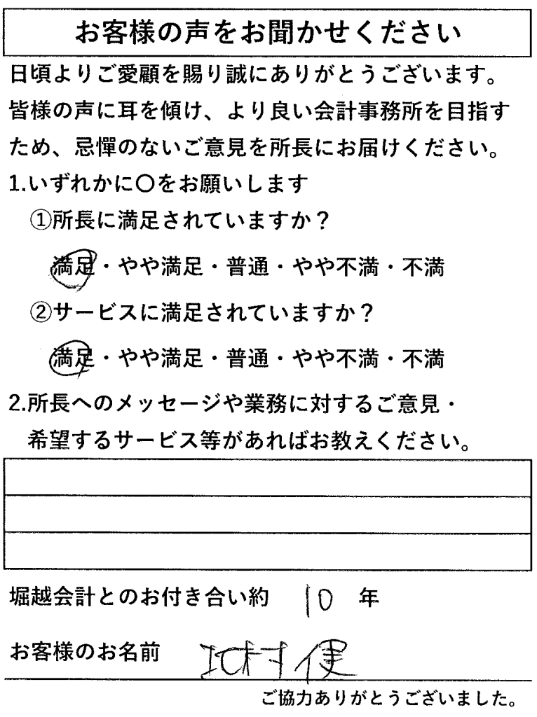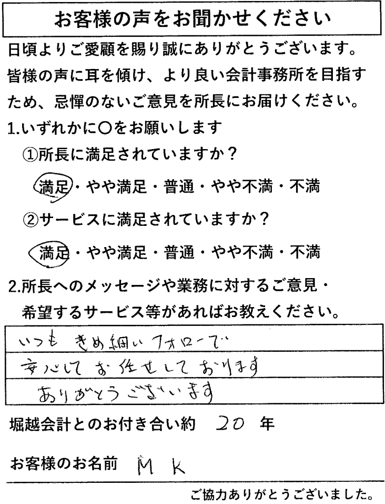 お客様からのアンケートが、大変励みになっております。